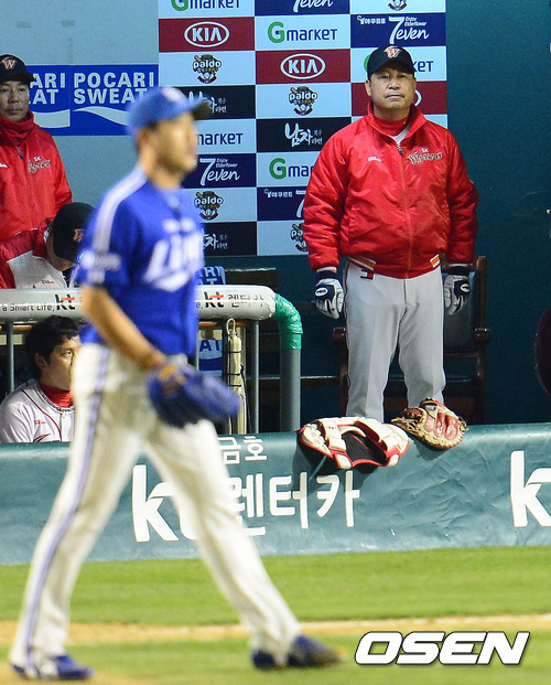 1일 오후 서울 잠실구장에서 열린 '2012 팔도 프로야구' 삼성 라이온즈와 SK 와이번스의 한국시리즈 6차전 경기 7회말 1사 이만수 감독이 경기를 바라보고 있다.