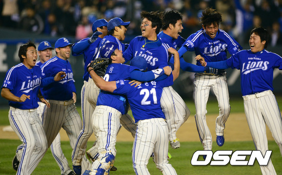 경기후 우승을 차지한 삼성 선수들이 기뻐하고 있다. /jpnews@osen.co.kr