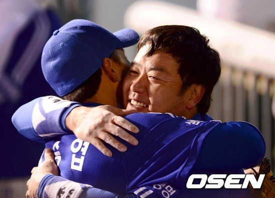 뜨거운 포옹을 나누는 이승엽과 진갑용