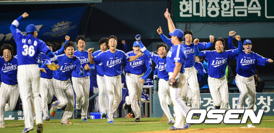 경기 종료 후 삼성 선수들이 기뻐하고 있다. / baik@osen.co.kr