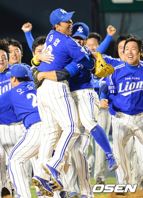 경기 종료 후 삼성 선수들이 기뻐하고 있다. / baik@osen.co.kr