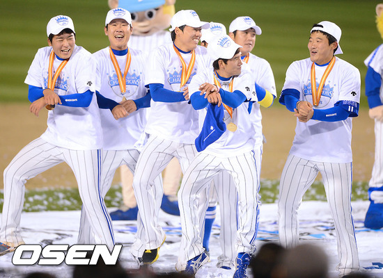 우승 후 삼성 선수들이 강남스타일 말춤을 추고 있다./ soul1014@osen.co.kr