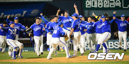 경기 종료 후 삼성 선수들이 기뻐하고 있다. / baik@osen.co.kr