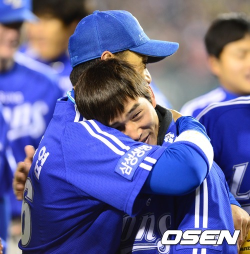 경기후 우승을 차지한 삼성 선수들이 기뻐하고 있다. /jpnews@osen.co.kr