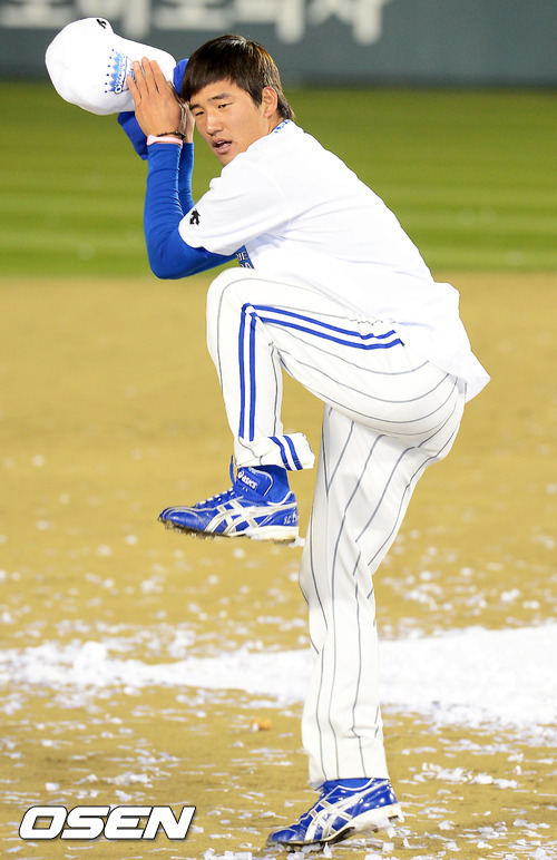 경기를 마치고 삼성 김상수가 그라운드 위에서 춤을 추고 있다. / rumi@osen.co.kr