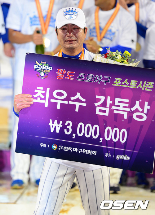 삼성 류중일 감독이 최우수 감독상을 받고 기념촬영을 하고 있다./sunday@osen.co.kr