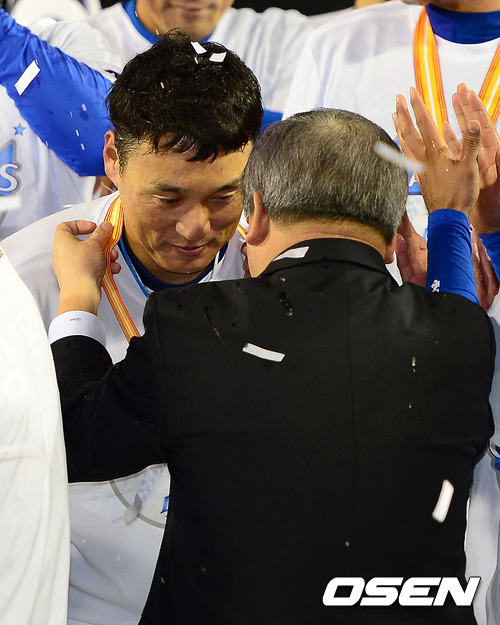 삼성 이승엽이 우승 메달을 목에 걸고 있다./sunday@osen.co.kr