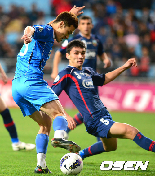지난달 31일 부뇨드코르(우즈베키스탄)와 '2012 아시아축구연맹(AFC) 준결승 2차전'에서도 마찬가지였다. 김승용은 선발로 나서 이근호와 부뇨드코르의 좌우 측면을 휘젓고 다녔다. 특히 날카로운 크로스와 프리킥, 코너킥 등을 선보이며 울산의 또 다른 강점인 높이를 빛나게 했다.