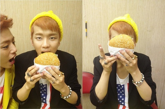 B.A.P 메인 보컬 영재가 햄버거에 얼굴이 가려지는 사진을 공개하며 작은 얼굴을 인증했다.
