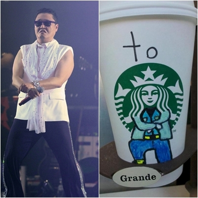 공개된 사진은 스타벅스 로고가 새겨진 종이컵에 누군가 '강남스타일' 춤을 추는듯한 몸을 그려넣었다. 그야말로 완벽한 합성으로 섬세하게 표현한 싸이의 무대 의상과 손동작은 네티즌을 폭소케하고 있다.
