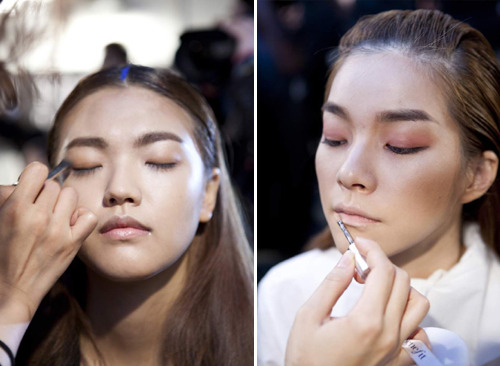 곽현주 컬렉션의 백스테이지 메이크업을 총괄한 베네피트의 이선재 아티스트는 “피부 속은 촉촉하지만 겉은 매트한 느낌의 피부 표현으로 청순한 느낌을 최대한 표현했으며 풍성하고 선이 강한 눈썹을 연출해 강인하면서도 신비로운 여전사 느낌을 살렸다”고 메이크업 포인트를 설명했다.