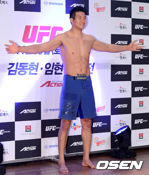 2일 오후 서울 용산 아이파크몰 E스포츠 스타디움에서 열린 'UFC in MACAU' 출정식에서 임현규가 포토타임을 갖고 있다.