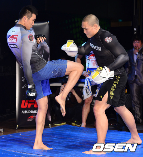 2일 오후 서울 용산 아이파크몰 E스포츠 스타디움에서 열린 'UFC in MACAU' 출정식에서 임현규가 오픈 워크아웃을 갖고 있다.