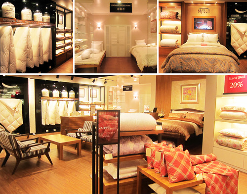 자체 기술력을 바탕으로 시베리아산, 폴란드산, 헝가리산 등 다양한 구스 이불 라인을 구축하고 있으며 구스다운 베개, 페더베드 등 기능성 이불들과 세련되고 실용적인 아메리칸 스타일의 이불 커버세트 등을 판매한다.