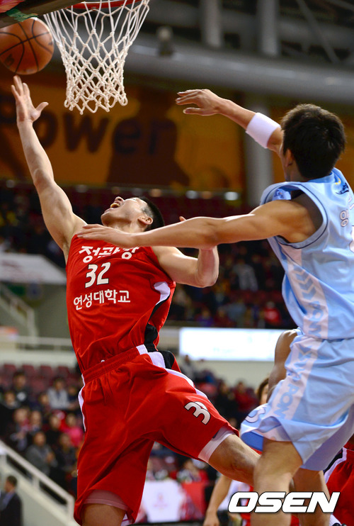 2일 오후 안양실내체육관에서 열린 'KB 국민카드 2012-2013 프로농구' 안양 KGC와 울산 모비스의 경기, 1쿼터 KGC 김일두가 리버스 레이업을 시도하고 있다.