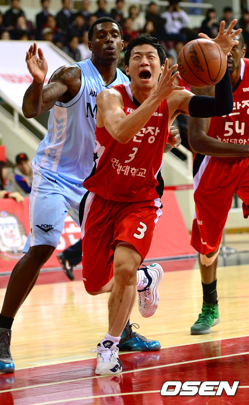 2일 오후 안양실내체육관에서 열린 'KB 국민카드 2012-2013 프로농구' 안양 KGC와 울산 모비스의 경기, 1쿼터 KGC 이정현이 루즈볼을 잡아내고 있다.