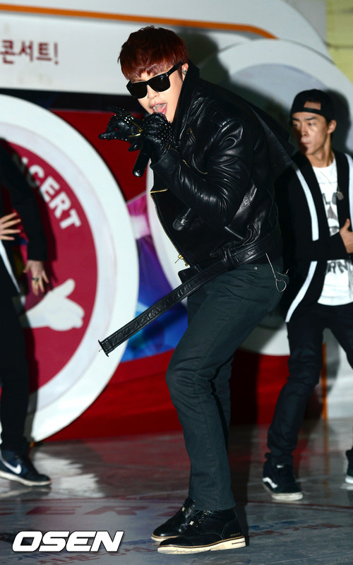 2일 오후 신분당선 판교역에서 진행된 '신분당선 개통 1주년 기념, YG패밀리 게릴라 콘서트'에서 세븐이 멋진무대를 선보이고 있다.
