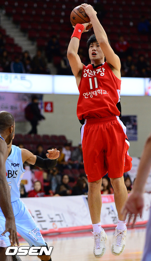2일 오후 안양실내체육관에서 열린 'KB 국민카드 2012-2013 프로농구' 안양 KGC와 울산 모비스의 경기, 1쿼터 KGC 양희종이 점프 슛을 시도하고 있다.