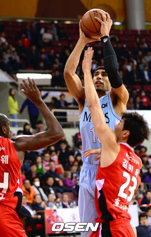 2일 오후 안양실내체육관에서 열린 'KB 국민카드 2012-2013 프로농구' 안양 KGC와 울산 모비스의 경기, 4쿼터 모비스 문태영 점프슛을 시도하고 있다.
