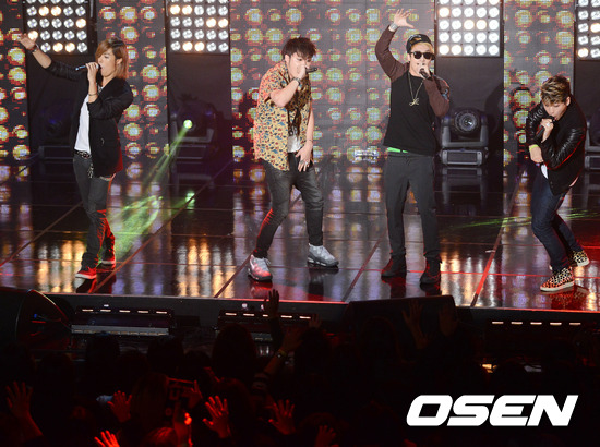 무대 위에서 엠아이비(M.I.B)가 열창을 하고 있다.