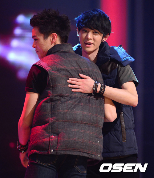 2일 오후 서울 동대문구 Mnet ‘슈퍼스타K4’(이하 ‘슈스케4’) 생방송 4라운드에서 탈락된 김정환이 정준영과 포옹을 하고 있다.