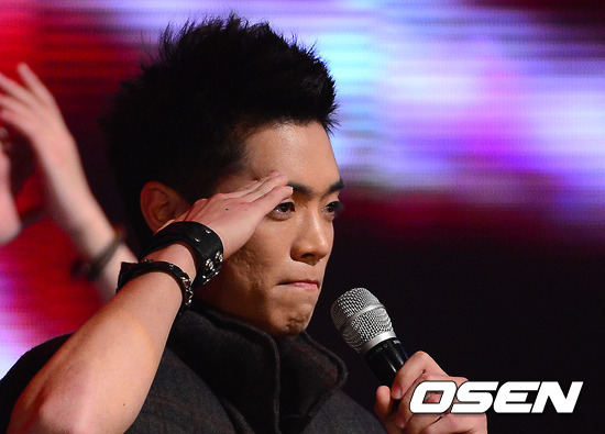2일 오후 서울 동대문구 Mnet ‘슈퍼스타K4’(이하 ‘슈스케4’) 생방송 4라운드에서 탈락된 김정환이 소감을 말하며 거수경례를 하고 있다.