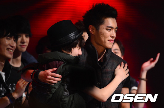 2일 오후 서울 동대문구 Mnet ‘슈퍼스타K4’(이하 ‘슈스케4’) 생방송 4라운드에서 탈락된 김정환이 유승우와 포옹을 하고 있다.