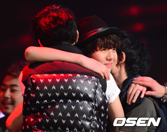 2일 오후 서울 동대문구 Mnet ‘슈퍼스타K4’(이하 ‘슈스케4’) 생방송 4라운드에서 탈락된 유승우가 참가자들의 위로를 받고 있다.