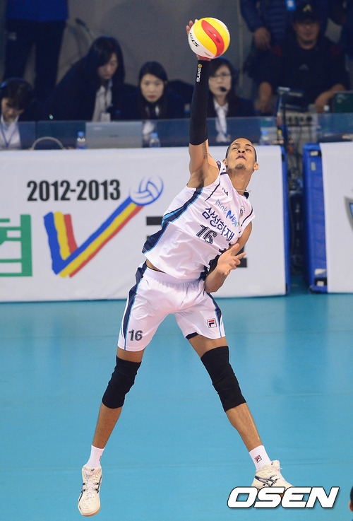 3일 오후 대전 충무체육관에서 열린 '2012-2013 NH농협 V-리그' 남자부 삼성화재와 KEPCO의 개막전 경기 1세트 레오가 서브를 넣고 있다.