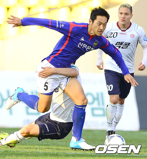 3일 오후 경기 성남 탄천종합운동장에서 열린 '현대오일뱅크 K리그 2012 성남 일화와 인천 유나이티드의 경기 후반 인천 김남일이 드리블을 하고 있다.