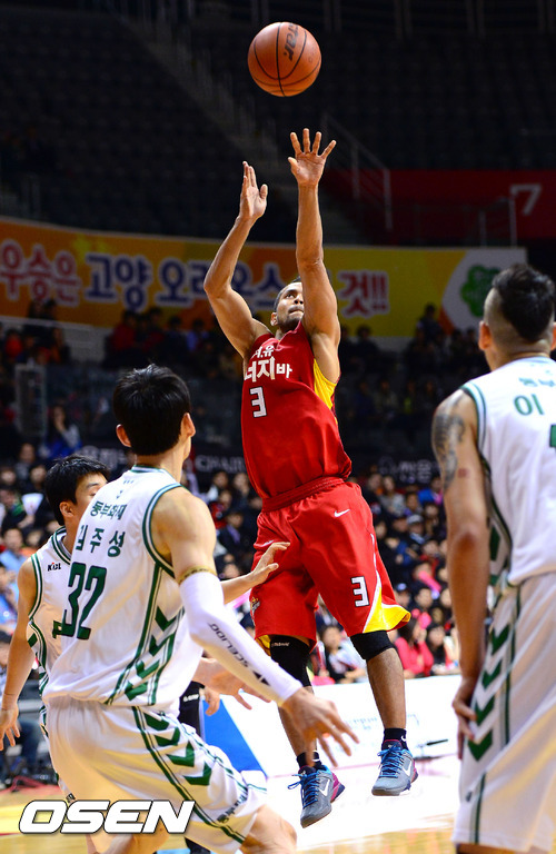 3일 오후 고양 실내체육관에서 열린 'KB 국민카드 2012-2013 프로농구' 고양 오리온스와 원주 동부의 경기 2쿼터 오리온스 전태풍이 미들슛을 시도하고 있다.