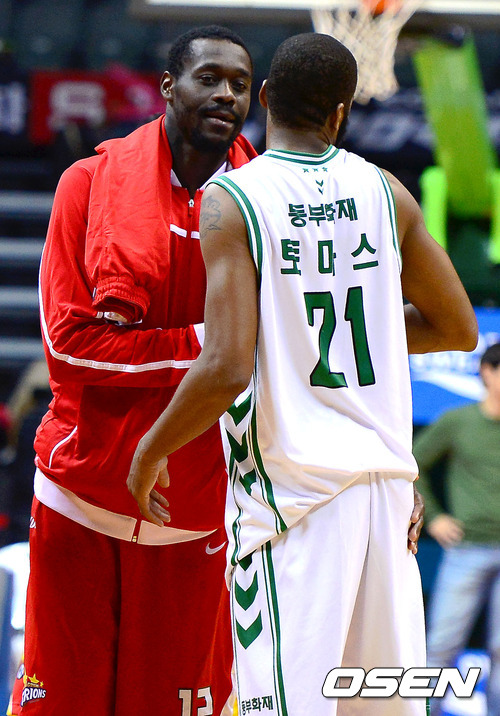 경기 종료 후 오리온스 레더와 동부 토마스가 이야기를 나누고 있다. / youngrae@osen.co.kr