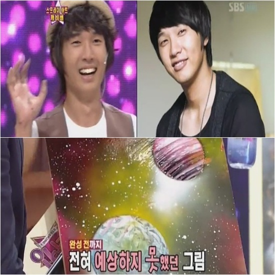 캐비버는 도화지에 스프레이와 손가락, 밥공기와 같은 간단한 도구만을 이용해 우주 공간을 표현하는 등 독특한 예술 세계를 뽐냈다.