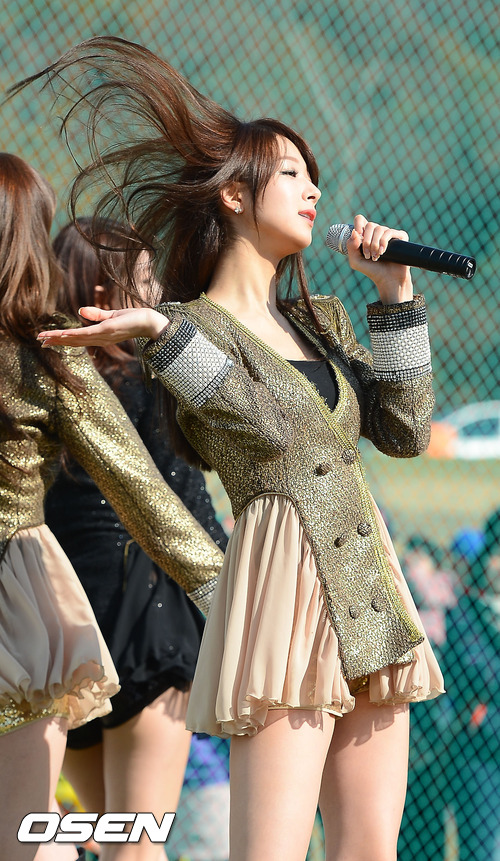 나인뮤지스가 그라운드 위에서 축하무대를 펼치고 있다.