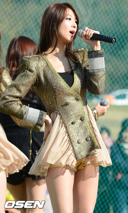 나인뮤지스가 그라운드 위에서 축하무대를 펼치고 있다.