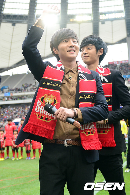 4일 오후 서울월드컵경기장에서 열린 '현대오일뱅크 K리그 2012' FC 서울과 수원 삼성의 경기 시작 전 로이킴이 애국가를 부른 후 경기장을 빠져나가고 있다.