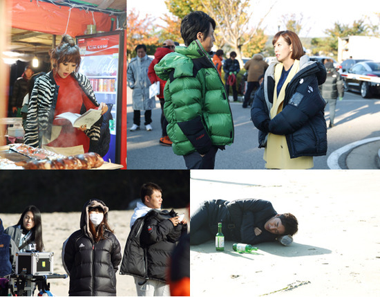이들 외에도 포장마차 안에서 대본을 보고 있는 나르샤(무산신녀 역)와 두꺼운 옷으로 중무장한 스태프들의 모습까지 추위에도 아랑곳 없이 촬영에 매진하는 ‘울라라부부’ 촬영장 모습이 인상적이다.