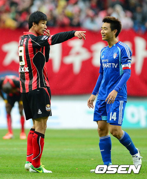 4일 오후 서울월드컵경기장에서 열린 '현대오일뱅크 K리그 2012' FC 서울과 수원 삼성의 경기 종료 후 정조국과 오범석이 이야기를 나누고 있다.