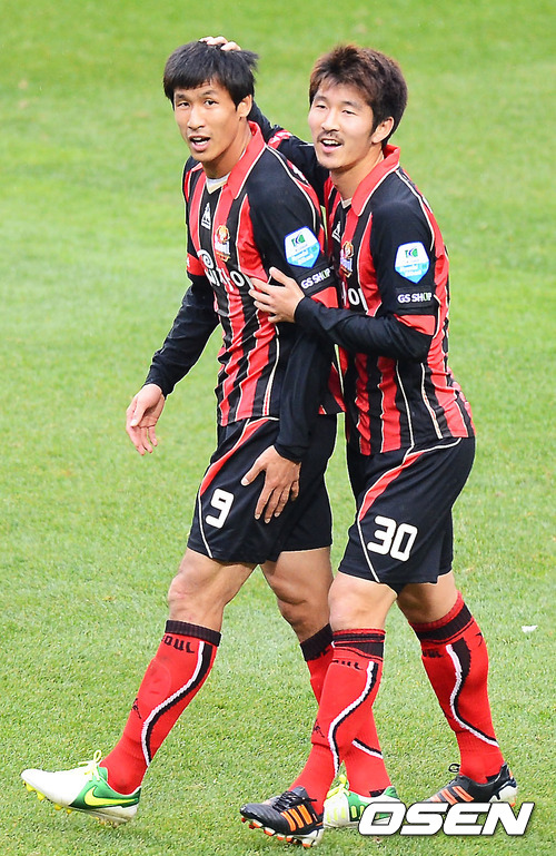 경기를 마치고 서울 정조국이 서울 박희도와 기쁨을 나누고 있다. / rumi@osen.co.kr