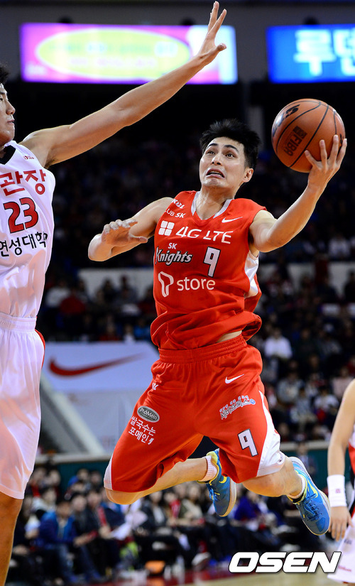 4일 오후 잠실학생체육관에서 열린 'KB 국민카드 2012-2013 프로농구' 서울 SK 나이츠와 안양 KGC의 경기 2쿼터 SK 주희정이 멋진 더블 크러치를 선보이고 있다.