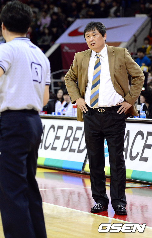 4일 오후 잠실학생체육관에서 열린 'KB 국민카드 2012-2013 프로농구' 서울 SK 나이츠와 안양 KGC의 경기 3쿼터 KGC 이상범 감독이 디펜스 파울 판정에 어필하고 있다.