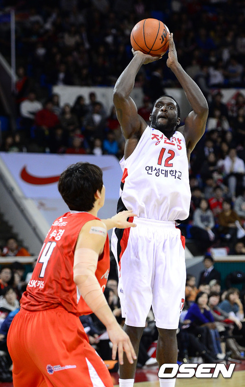 4일 오후 잠실학생체육관에서 열린 'KB 국민카드 2012-2013 프로농구' 서울 SK 나이츠와 안양 KGC의 경기 3쿼터 kGC 파틸로가 점프슛을 시도하고 있다.