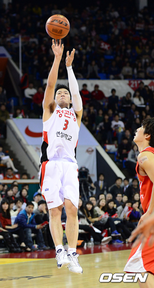 4일 오후 잠실학생체육관에서 열린 'KB 국민카드 2012-2013 프로농구' 서울 SK 나이츠와 안양 KGC의 경기 3쿼터 KGC 이정현이 점프슛을 시도하고 있다.