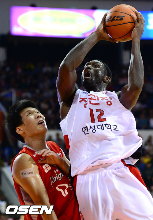 4일 오후 잠실학생체육관에서 열린 'KB 국민카드 2012-2013 프로농구' 서울 SK 나이츠와 안양 KGC의 경기 3쿼터 KGC 파틸로가 레이업슛을 시도하고 있다.