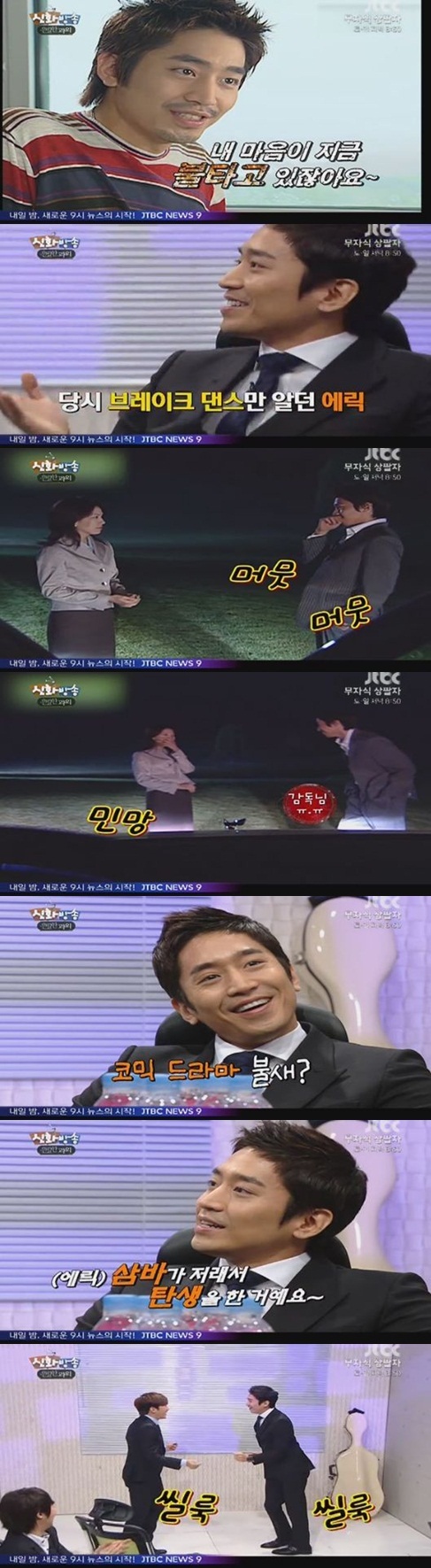 에릭은 "당시 브레이크댄스를 추는 때라 힘들었다"며 "감독님이 춤을 추라고 하는데 어떤 춤을 춰야 할지 모르겠어서 '뭐라도 해야겠다'는 생각에 삼바 같은 춤을 췄다"고 말해 웃음을 자아냈다.