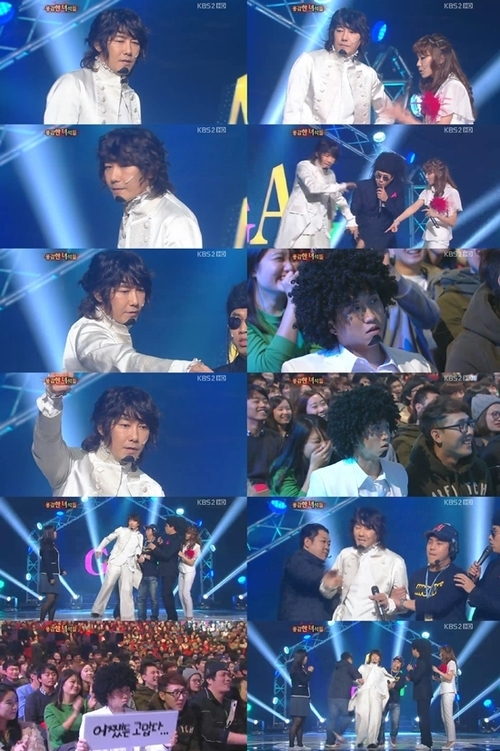 최근 이승건 PD와의 외모대결에서 패배한 이후 코너에서 강제로 하차한 박성광을 대신해 이날은 가수 김장훈이 ‘용감한 녀석들’로 변신했다.