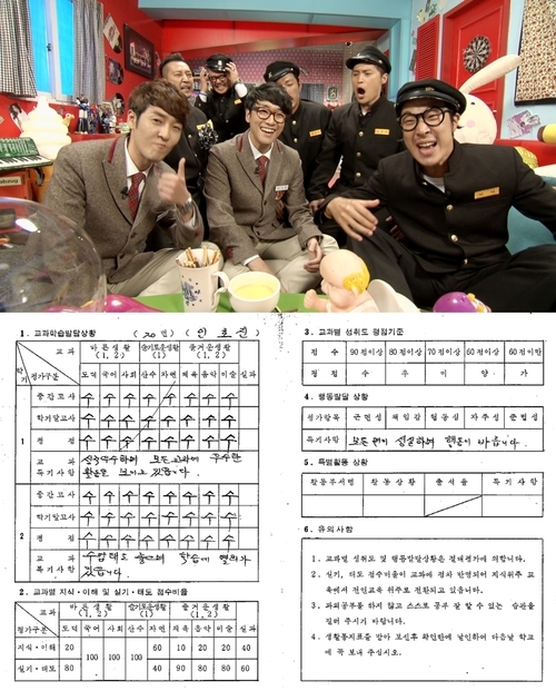 성진환 외에도 스윗소로우 멤버들은 수로 도배된 성적표를 공개, '하극상' 멤버들을 깜짝 놀라게 했다. 특히 인호진은 담임 선생님의 애정 가득한 글이 담긴 성적표를 내놓으며 성적과 성격, 두 방면에서 모두 우월한 모습을 보였다.