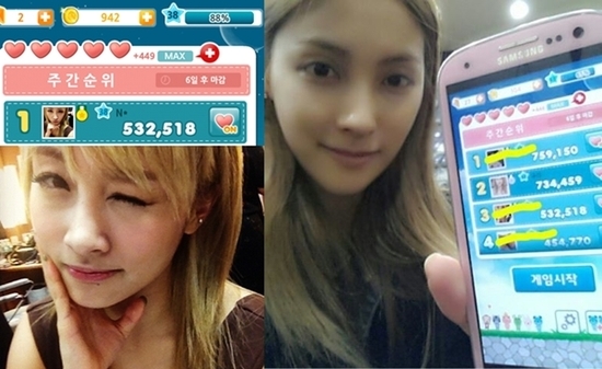 사진 속에는 니콜이 53만점이라는 놀라운 점수로 1위에 올라있어 눈길을 끈다. 애니팡은 동일한 모바일 메신저 이용자 간 점수 경쟁을 할 수 있는데 니콜은 그 중에서 1등을 차지해 팬들을 놀라게 했다.