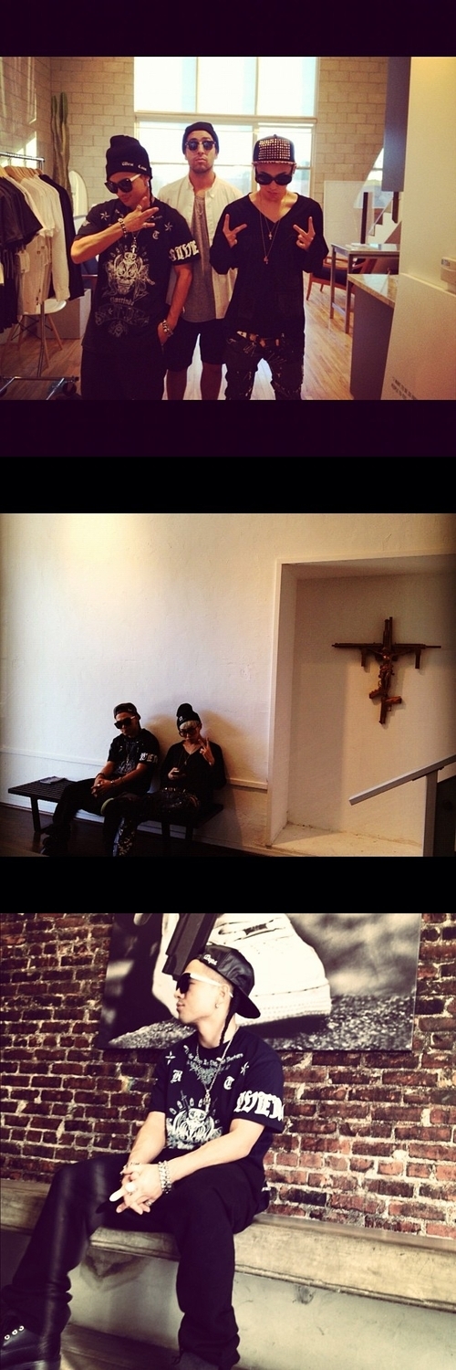 사진 속 지드래곤과 태양은 모두 블랙으로 통일한 의상으로 세련된 멋을 자랑한다. 지드래곤은 빛나는 큐빅으로 장식된 모자를 착용하며 화려한 패션 센스를 뽐내고 있다. 또 태양은 멋있는 힙합 패션으로 지드래곤에 지지 않는 센스를 발휘했다.