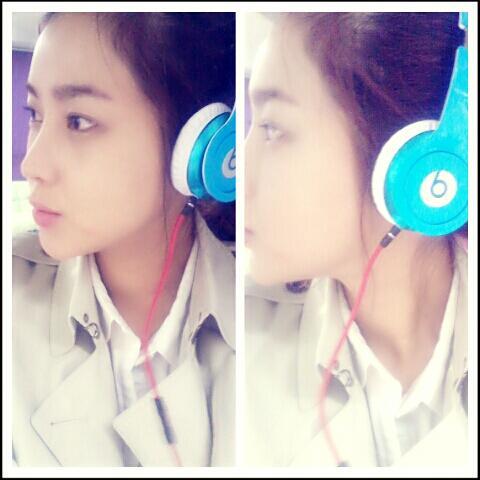 사진 속 솔비는 귀에 파란색 헤드폰을 착용하고 있다. 부쩍 청순해진 미모를 자랑하며 음악에 심취한 듯한 모습이다.
